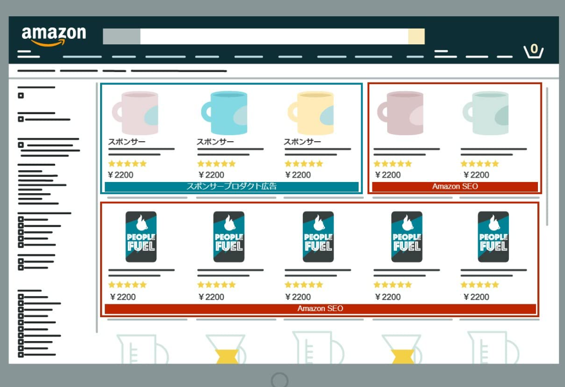 Amazon広告の多くは、ユーザーが検索したキーワードや閲覧している商品に関連して表示されます。もっとも目にする機会が多いのは、検索結果一覧の中に表示される「スポンサー」というタグがついた商品です。