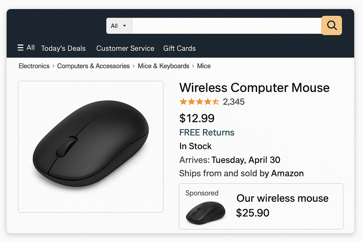 ディスプレイ広告の真骨頂は、Amazon内での「リターゲティング(リマーケティング)」です。 「一度自社の商品ページを見たけれど、買わずに離脱した人」や「競合他社の商品を見ている人」を追跡し、商品詳細ページのカートボタン下や、レビュー欄の近くに広告を表示させることができます。