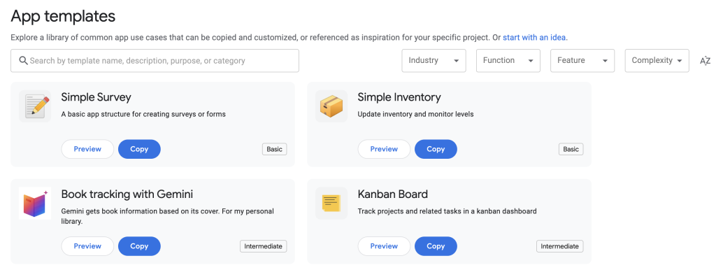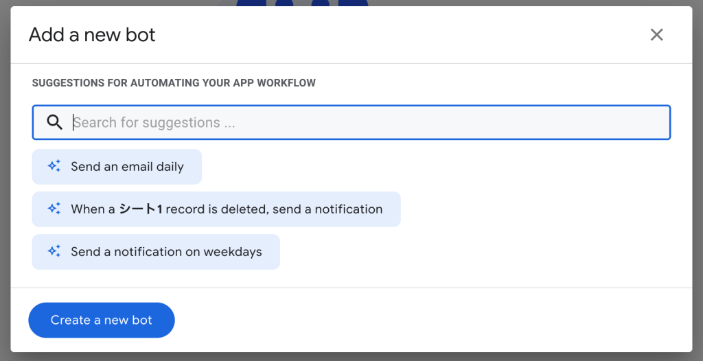 ユーザーが作りたいアプリのアイデアや業務プロセスを自然言語で入力するだけで、Geminiがそれを理解し、アプリの雛形を自動的に生成してくれる機能です。「作りたいアプリのアイデアはあるが、どうデータ化すればいいかわからない」場合に開発をアシスタントしてくれます。
