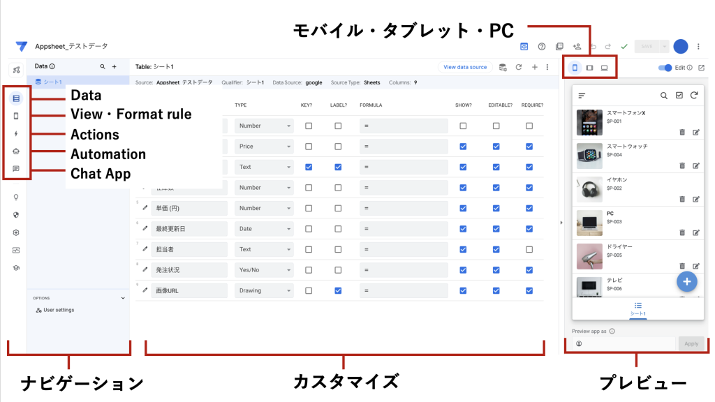AppSheetは、プログラミング不要で、ExcelやGoogleスプレッドシートのデータを元に、業務アプリを簡単に作れるノーコードプラットフォームです。
