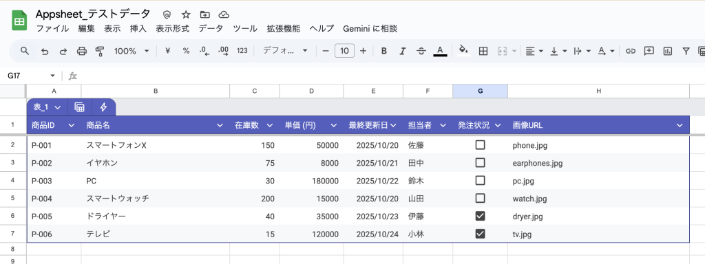 今回は、AppSheetを作成するうえで最も一般的な「既存データから作成する方法」を紹介します。まずは Googleスプレッドシートをデータソースとして準備しますが、ほかにも Excel や Google Forms、さらに SQL Server・MySQL などのクラウドデータベースも利用可能です。用途に合わせて、扱いやすいデータソースを選びましょう。