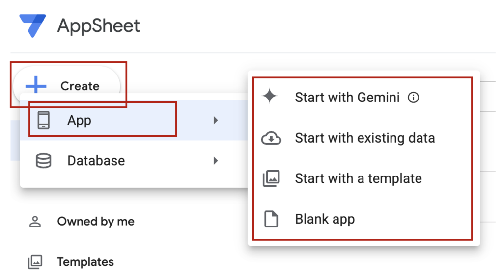 データソースも機能も一切含まれていない、完全に空の状態からアプリ開発をスタートする方法で、AppSheet開発の中でも最も自由度が高い反面、すべての設定をユーザー自身で行う必要があり、開発に対する明確なビジョンを持っているユーザーに向いています。