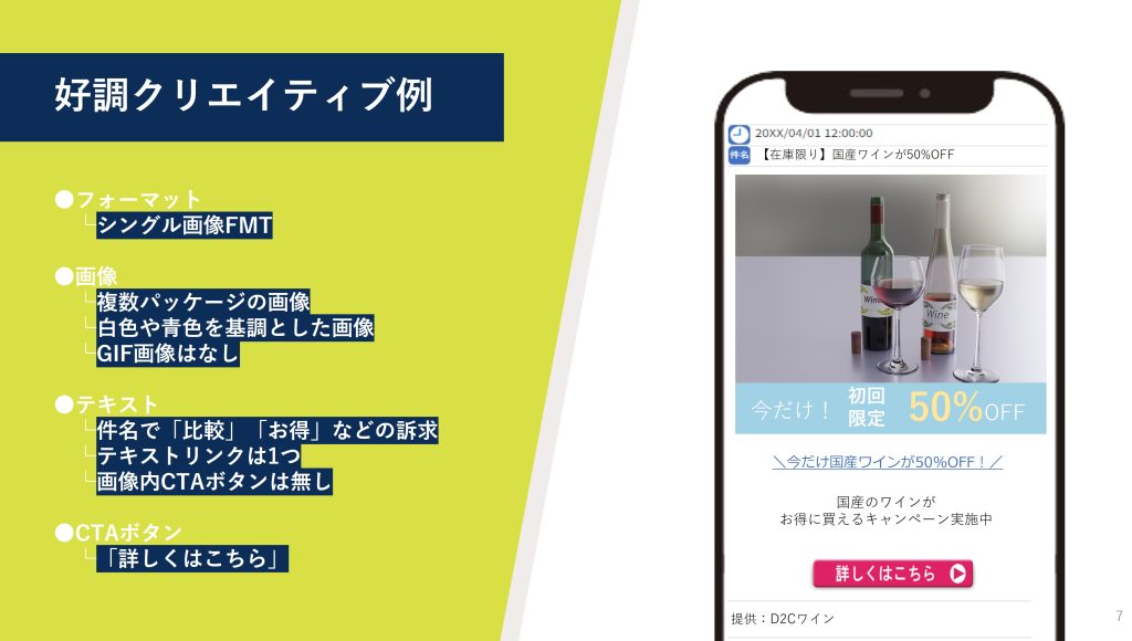 ・テキスト含有率:画像内文字数は少なく、シンプルな訴求