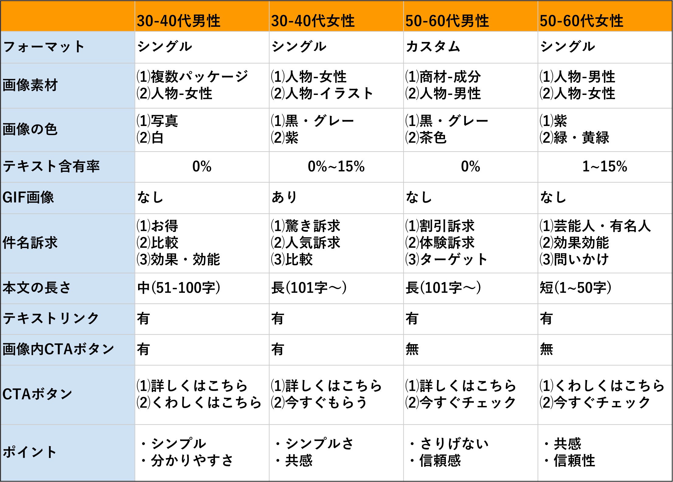【50代・60代男性】CTR好調クリエイティブの特徴