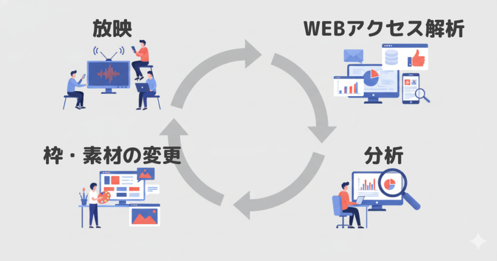 運用型テレビCMは、導入すれば自動的に成果が出る「魔法のツール」ではありません。むしろ、Web広告と同じように、「準備(設計)」「計測」「改善」の泥臭い運用プロセスこそが成功の鍵を握っています。