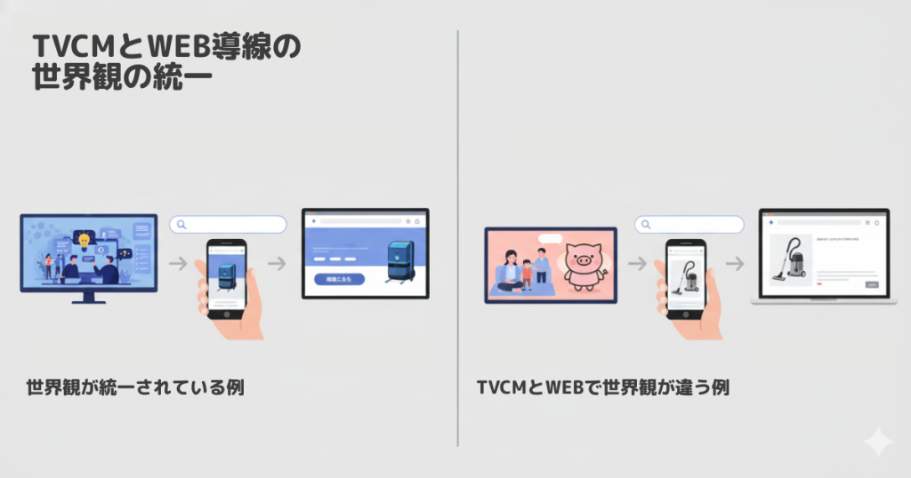 CMの企画段階からWeb担当者を巻き込み、「CMで検索窓(検索マド)に見せるキーワードはこれで、LPのファーストビューも同じコピーにしよう」といった、シームレスな動線設計を徹底してください。