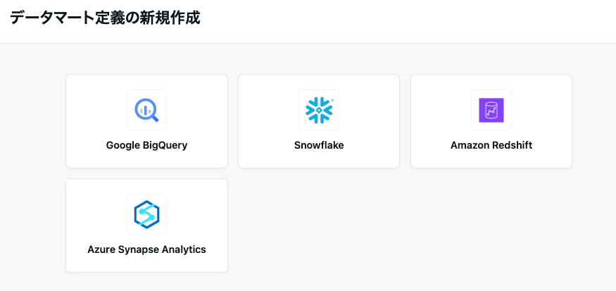 左メニューから「データマート」を選び「新規作成」から作成したいサービスを選択してください。