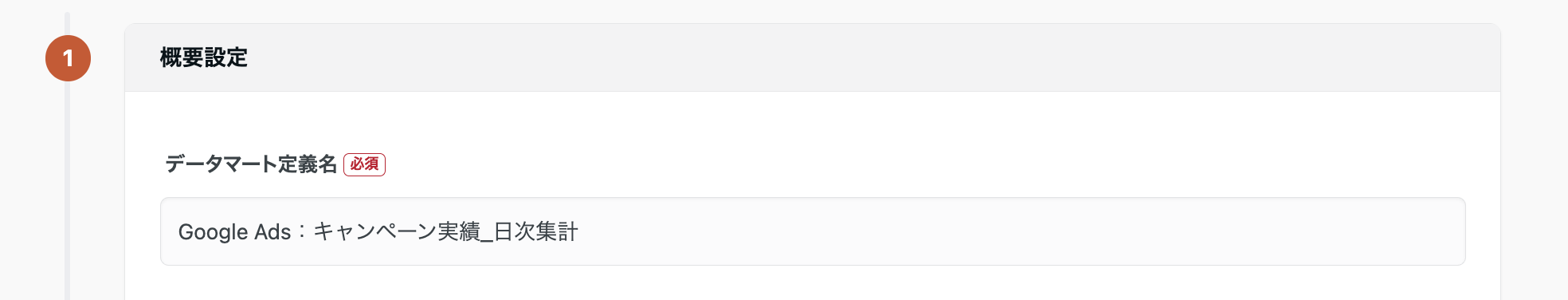 【データマート定義名】作成するデータマート定義の名前を入力します